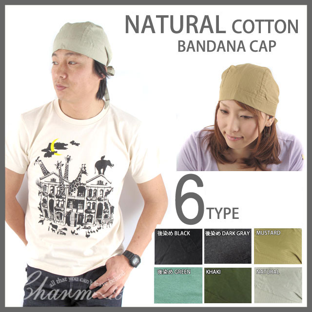 ナチュラルコットンバンダナキャップ /ターバンワッチ/バンダナ帽子/室内帽子/ |