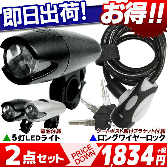 【5,000円(税別)以上で送料無料】自転車用アクセサリーパーツ2点セット(ロングワイヤーロック+5灯LEDライト自転車 ライト じてんしゃ LEDライト/ラン... |