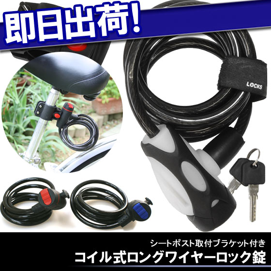 コイル式ロングワイヤーロック ワイヤー錠 シートポスト取付ブラケット付き18%OFF □代引OK□ カードOK 即納 |